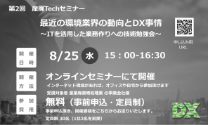廃棄物業界でのITの利活用推進を目的とした”産廃Techセミナー”の第二弾を実施いたします。