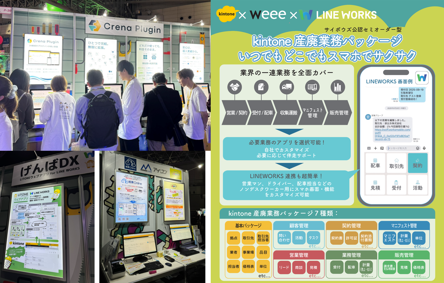 各パートナー様のブースにて、kintone 産廃業務パッケージのご紹介をしております。