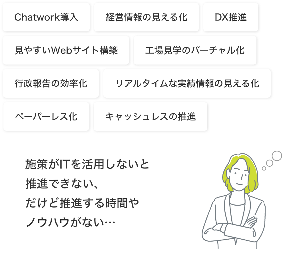 IT活用による業務フローの見直し・効率化、集客できるWebサイトの制作、工場など各種施設見学のバーチャル化、社内コミュニケーションのチャット化、ならびにIT活用・DX化における全般ついて良質なアドバイスを提供してます。